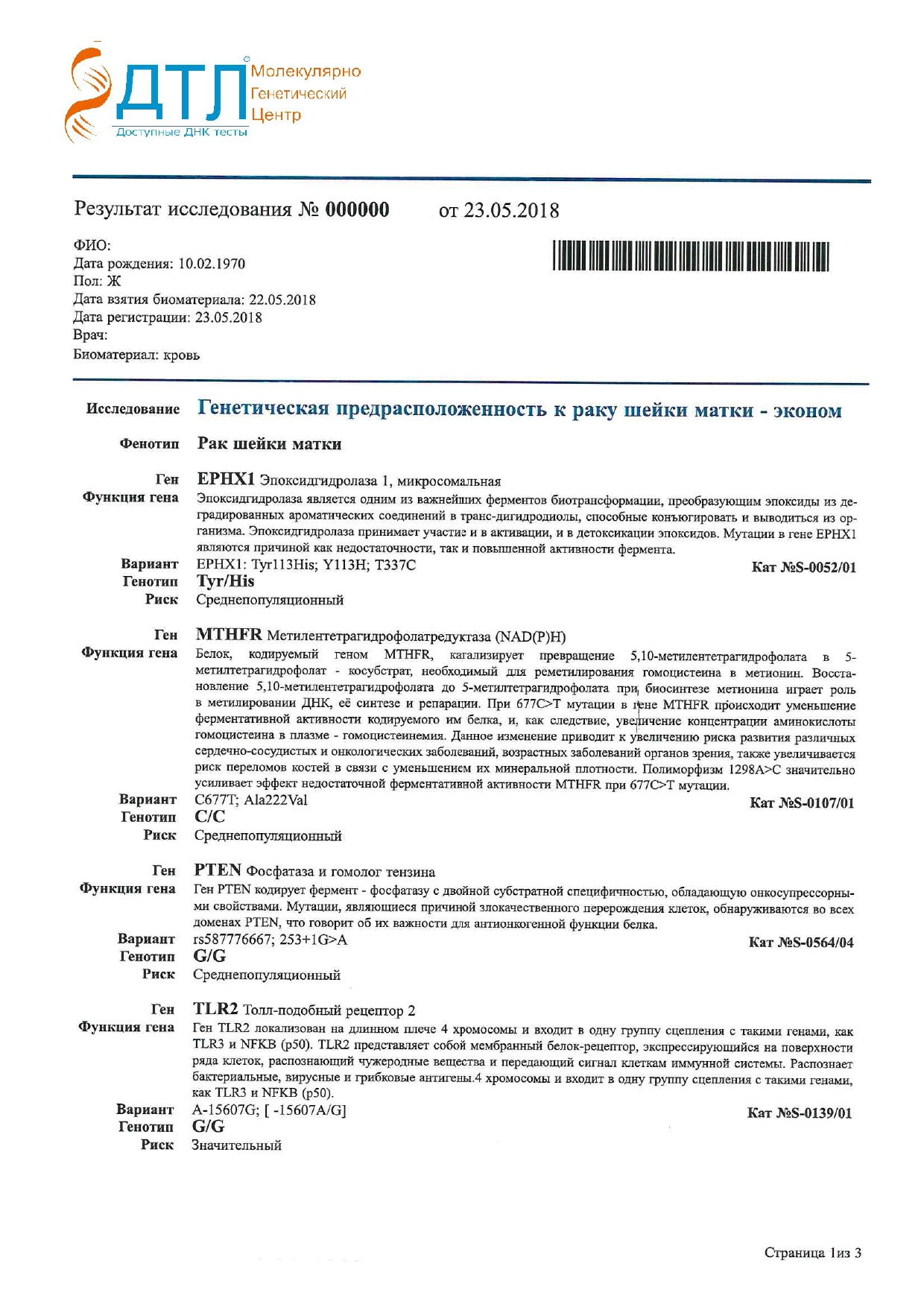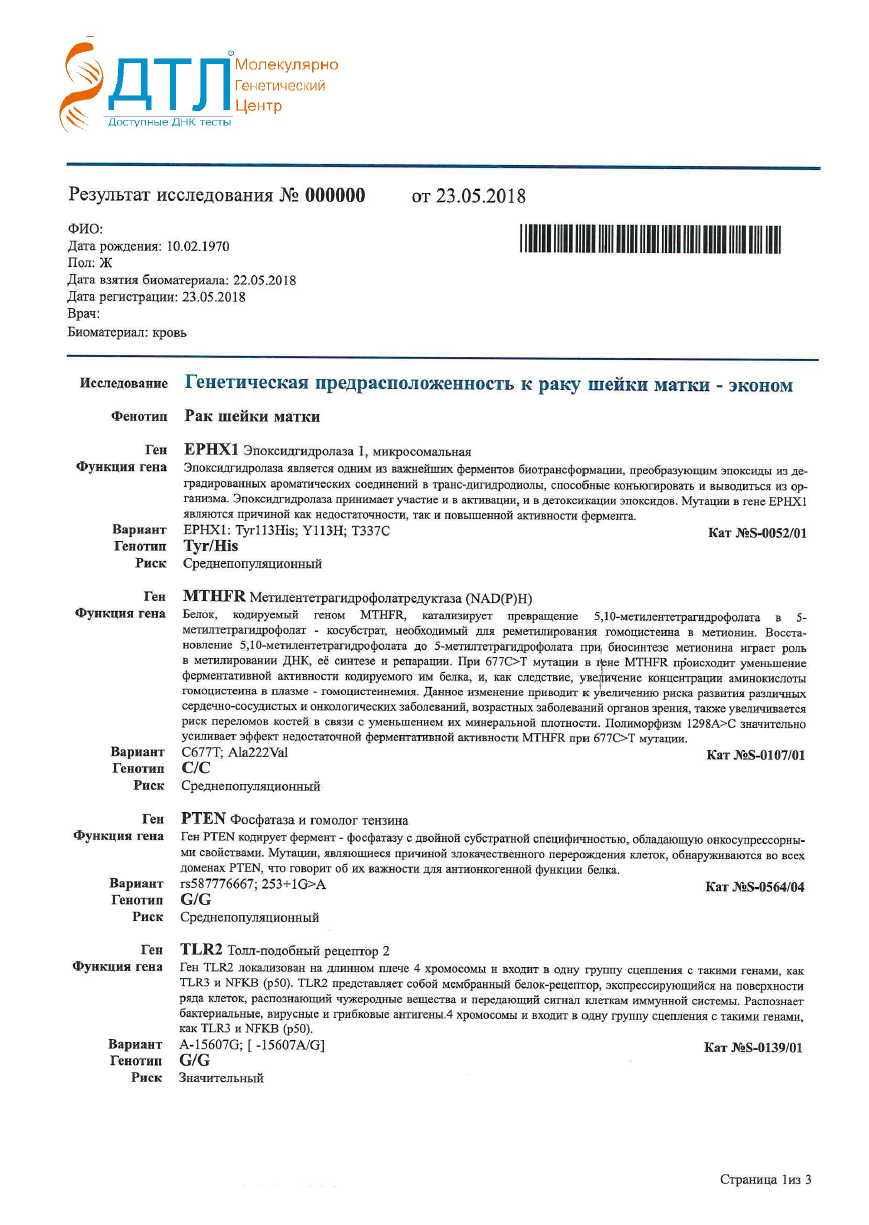 Как оплатить ДНК тест на предрасположенность к раку шейки матки