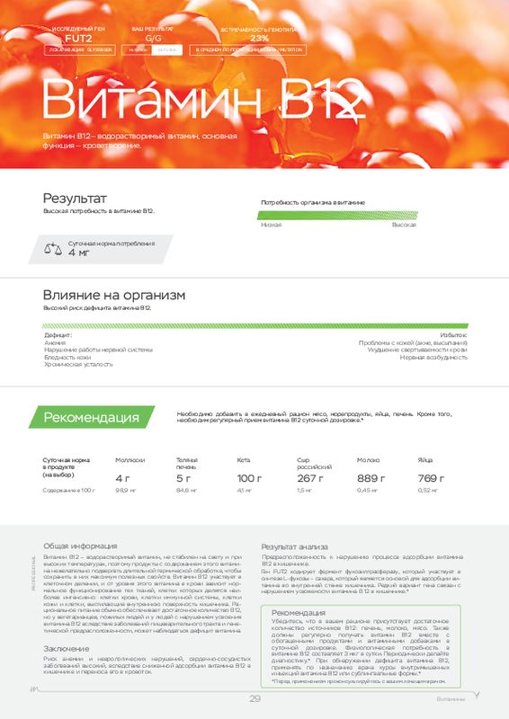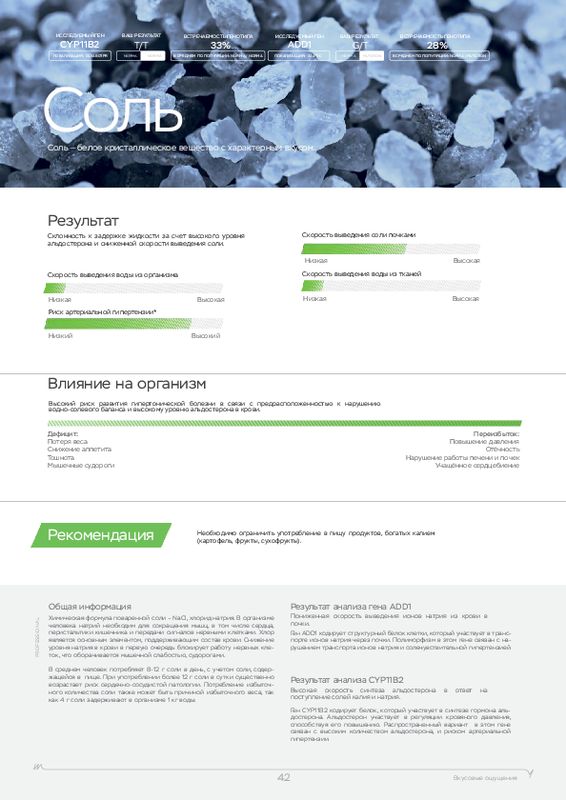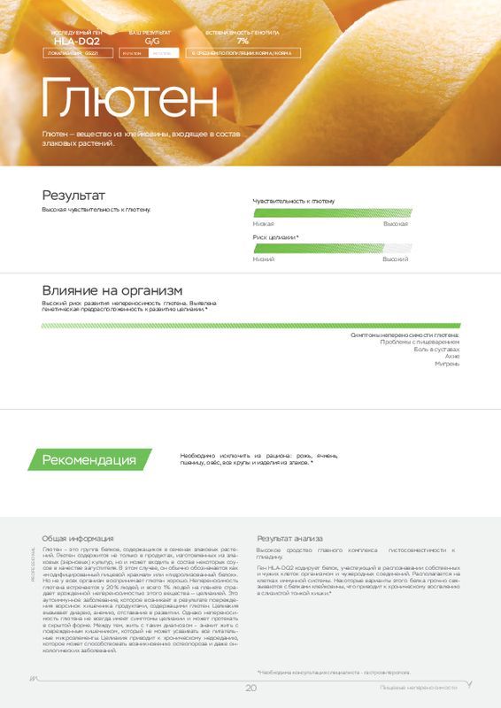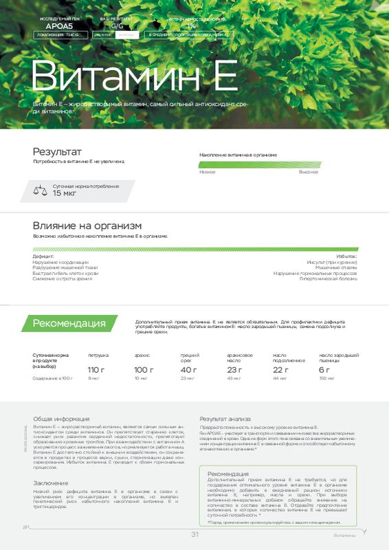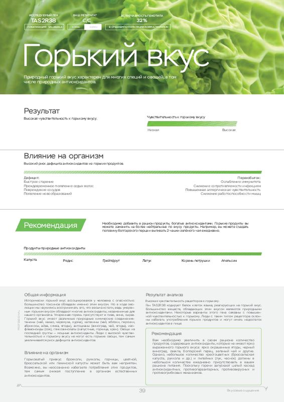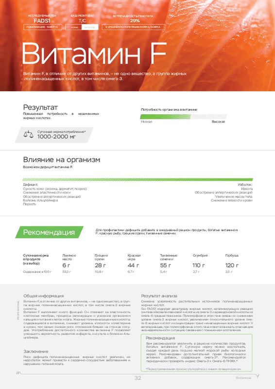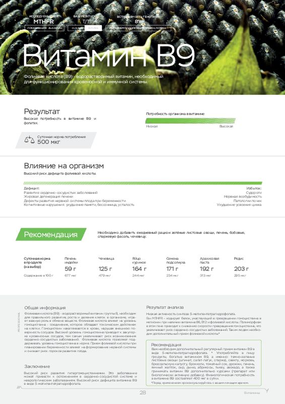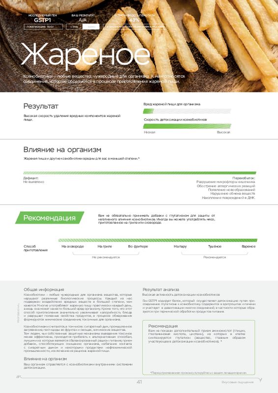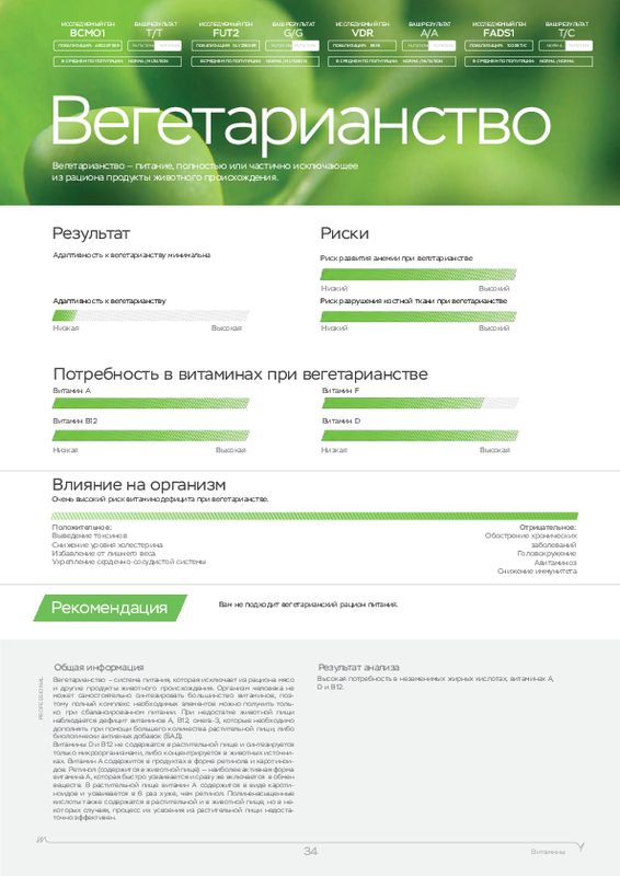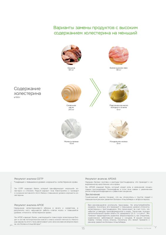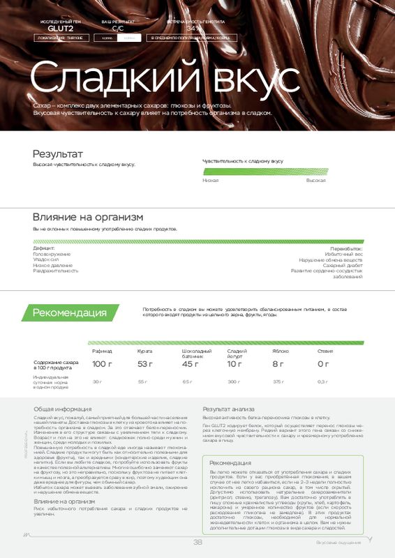В заключении будет информация о продуктах, которые стоит избегать или, наоборот, включить в рацион. По результатам ДНК-исследования рекомендовано проконсультироваться с эндокринологом или диетологом.
