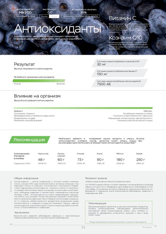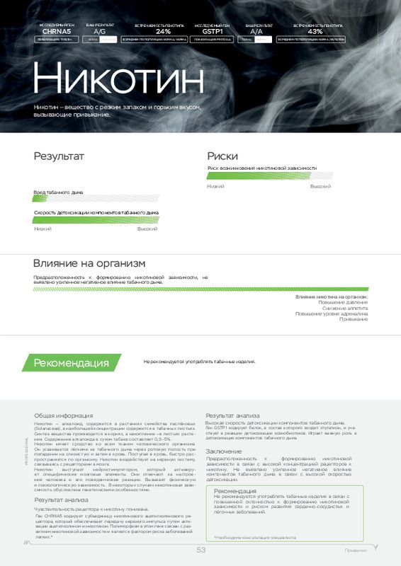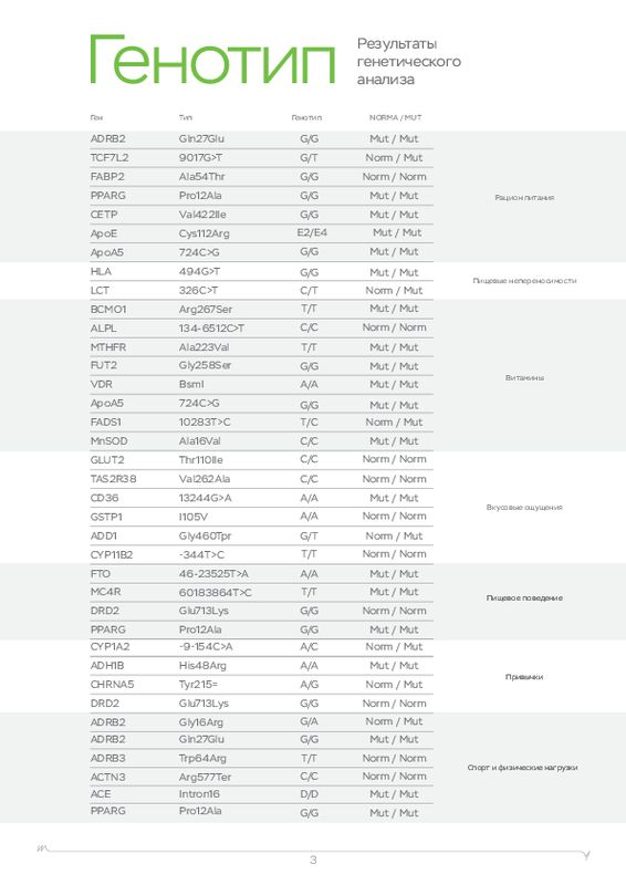 Данные отчета являются персонализированной генетикой и эффективно могут быть использованы только для конкретного человека.